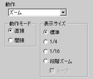 [動作]で[ズーム]を選択した場合に、[直接]、[間接]から選択します。
