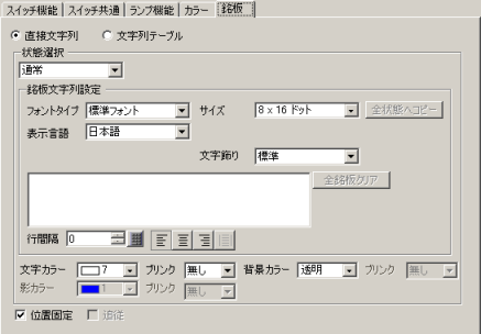 すべての状態の[文字列入力枠]の内容をクリアします。フォントタイプやカラーなど、文字列以外の[銘板]タブ内の設定内容は変更されません。