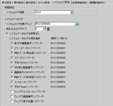 [システムエリア先頭アドレス]を設定し、[システムデータエリアを使用する]にチェックを入れます。