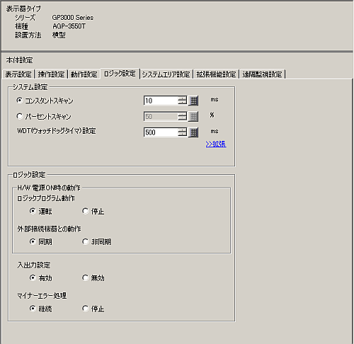 ロジックスキャンタイムの監視時間を設定します。ロジックスキャンタイムがWDT(ウォッチドッグタイム)を超えた場合はエラーになります。
