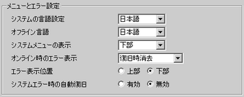 オンライン時のエラー表示を消去するタイミングを[無]、[復旧時消去]、[画面切替時消去]から選択します。