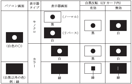 モノクロ機種またはカラー機種では白黒反転状態は次のように表示されます。