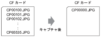 CFカード内のすべての画面キャプチャファイル「CP*****.JPG」を削除して、「CP00000.JPG」で保存します。