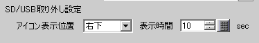 SDカード/USBストレージの取り外しアイコンの配置場所を[無し]、[右下]、[右上]、[左下]、[左上]から選択します。