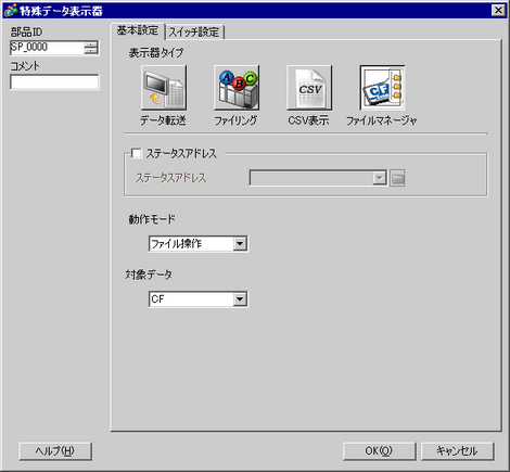 配置した特殊データ表示器[ファイルマネージャ]をダブルクリックすると、次のダイアログボックスが開きます。
