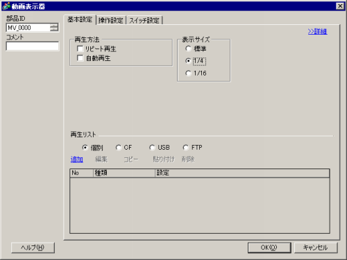配置した動画表示器をダブルクリックすると、次のダイアログボックスが開きます。