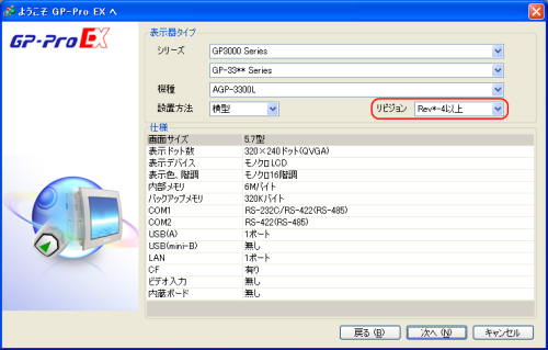 GP-3300シリーズ(AGP-3310T、AGP-3360T、HandyGPを除く)でリビジョンがRev*-4未満の機種をお使いの場合、GP-Pro