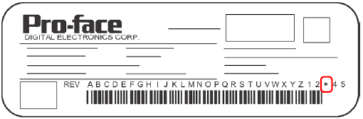 リビジョンは表示器に貼付された銘板ラベルで確認できます。以下の例では、本来「3」がある位置に「*」があるため「Rev.3」の表示器となります。
