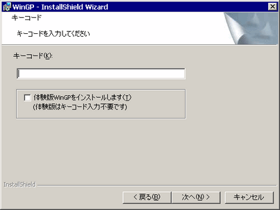 体験版をインストールされる場合は、[体験版WinGPをインストールします]にチェックを入れてください。