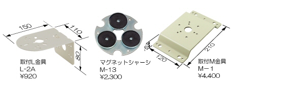豊富なオプション品で様々な取り付け方が可能です。取り付け場所に応じたオプションをお選びください。 (写真はAPを取り付けた状態のものですが、APC・APF-A・APW・LAP-A・LAPE・LRP-Aにも取り付け可能です。)