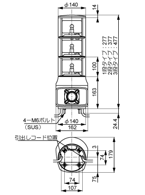 | φ140 ホーンスピーカ型音声合成警報器内蔵積層式電球回転灯 |