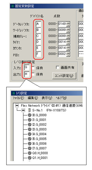 GP-PRO/PB3 C-Package ではデバイス名を任意で設定できましたが、GP-Pro EX では固定になります。GP-PRO/PB3 C-Package でデバイス名を変更していた場合は、すべて固定のデバイス名にコンバートされます。