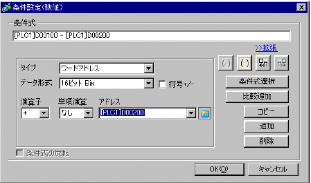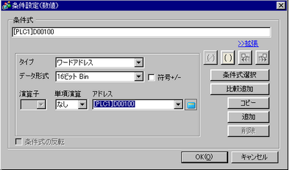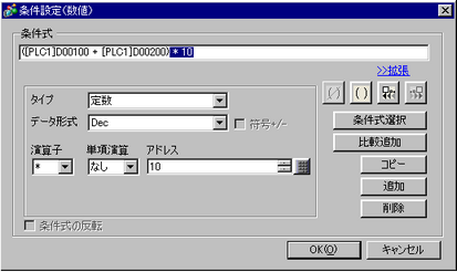 をクリックすると条件設定(数値)画面が表示されます。