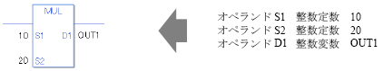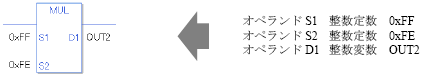 MUL、MULP命令は乗算命令です。MUL命令を実行すると、S1 と S2が乗算され、結果がD1に格納されます。