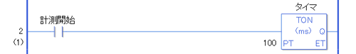 計測開始がON(導通)すると、TON命令に起動がかかるために、経過時間.ETがタイムベースで設定された単位で増加します。