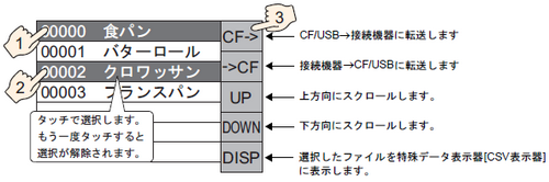特殊データ表示器[データ転送]には、CSVファイルを作成した順番で表示されます。ファイル番号や日付順にソートすることはできません。
