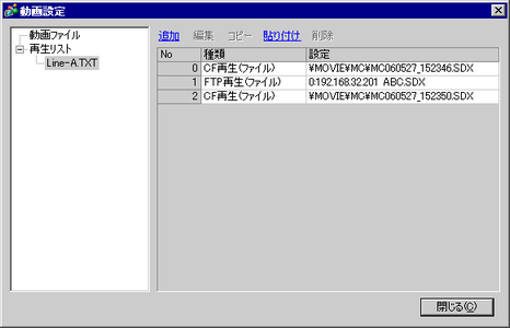 作成したファイル(TXT)は、動画表示器の[再生リスト]で[FTP]を選択して指定します。