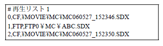 再生リストファイルをFTPサーバに作成する場合は、テキストファイル(メモ帳など)を使用して次のようなフォーマットでファイルを作成します。